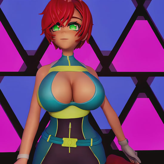 Evie Akashiya is a striking and unforgettable presence with a charm as bold as her appearance. Standing 5'8" with a statuesque figure and jaw-dropping measurements of 32-24-40, Evie knows how to turn heads. Her fiery red hair perfectly frames her mischievous green eyes, which sparkle with playful curiosity.